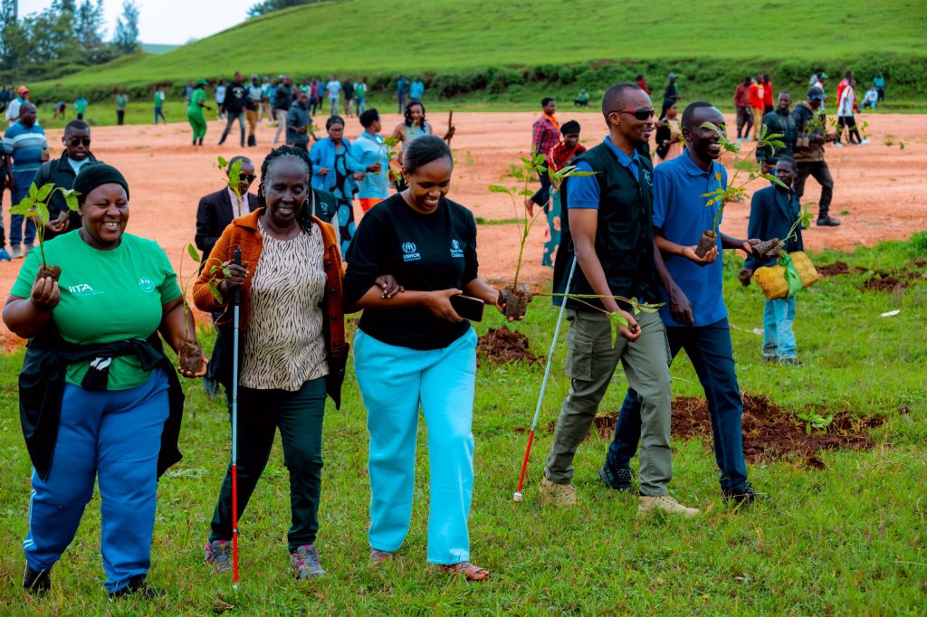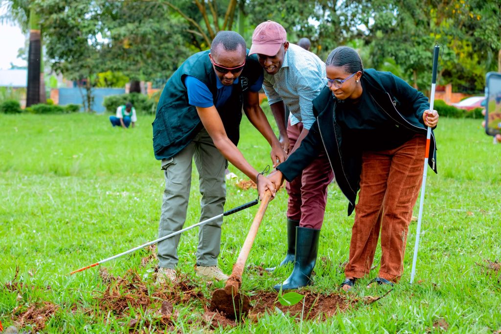 Regine Umuhoza, a student at the University of Rwanda Huye Campus and representative of learners with visual disabilities, said her participation showed that visually impaired citizens can fully engage in community activities. “I planted four trees. The white cane is essential for us who are visually impaired. We request that these canes be made more accessible at the local level because they can easily break, and replacing them is costly. It would be better if they were available closer to where we live,” she said.