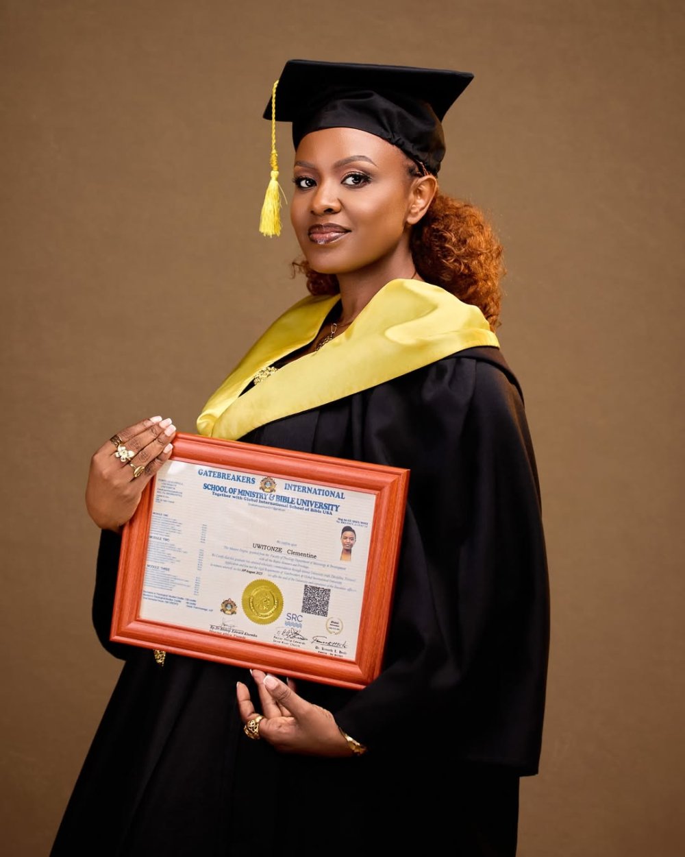 Uwitonze Clementine, popularly known as Tonzi in gospel music, has been awarded a Master’s degree in Theology from Gate Breakers University in Uganda.